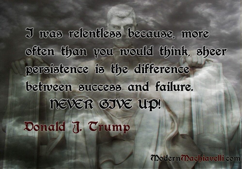 I was relentless because, more often than you would think, sheer persistence is the difference between success and failure. NEVER GIVE UP! - Donald J. Trump